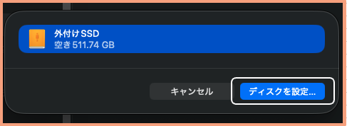 ・接続した外部ドライブを選択 → ディスクを設定...をクリックします。