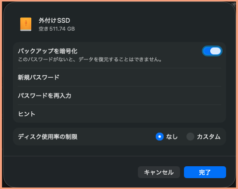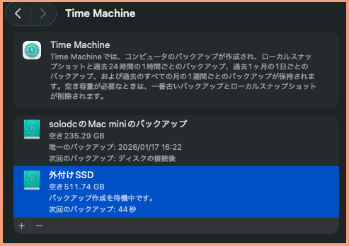 初めての【Mac mini M4】バックアップ「 Time Machine」(標準・自動バックアップ)を利用する