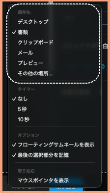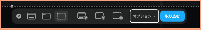 キーボードショートカット【Command +Shift + 5】を押すと、ツールバーが表示されるので、「オプション」をクリックして保存先を設定できます。