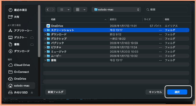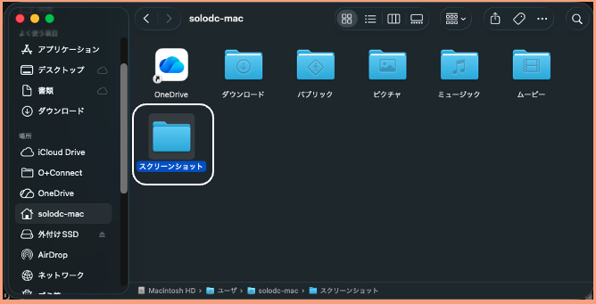 ・Finderで新しいフォルダを作成します。(例: 「スクリーンショット」フォルダ)