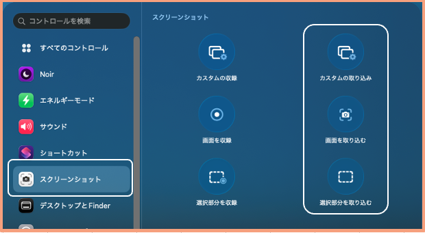 「カスタムの取り込み」➡️ 特定のウィンドウ撮影にカスタマイズ