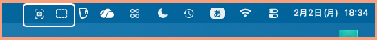 スクリーンショットを撮るときは、メニューバーにある「スクリーンショット」アイコンをクリックします。部分撮影の場合は、クリック後に範囲を指定します。