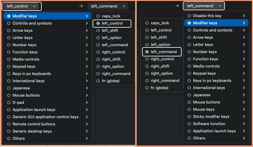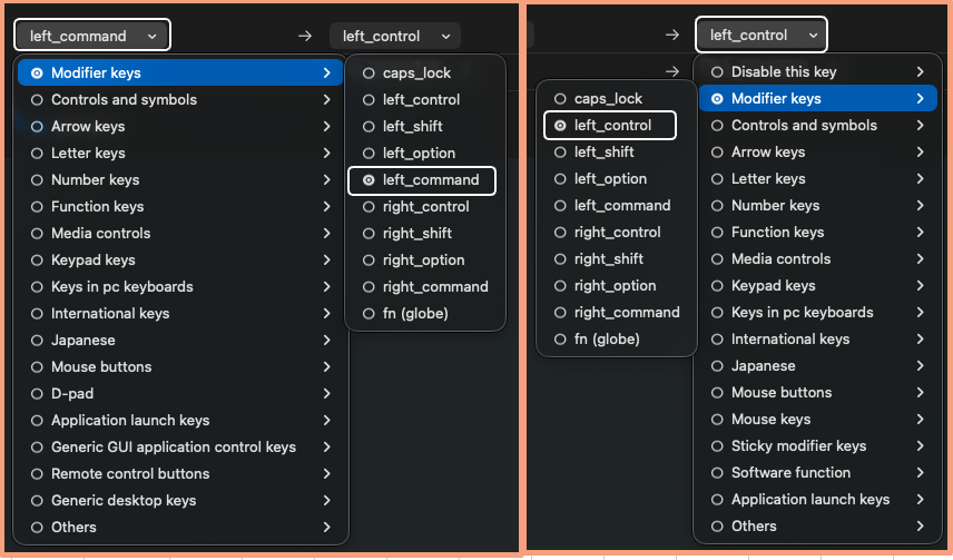 ・From key: left_control → To key: left_command