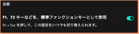 ※「Pebble Keys 2 K380s」の場合、「Logi Options+」アプリで「F1〜F12を標準機能キーとして使用」にチェックを入れる必要があります。